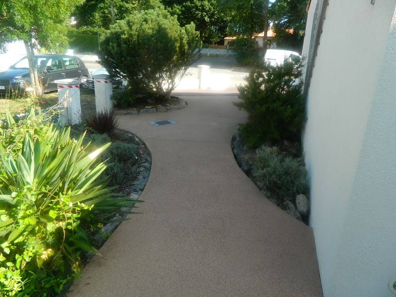 Le béton drainant REVASOL est teinté dans la masse, il s'intègre complètement à votre espace extérieur. Les massifs sont délimités par des coffrages droit ou arrondis, ce qui nous permet de donner la forme souhaitée.