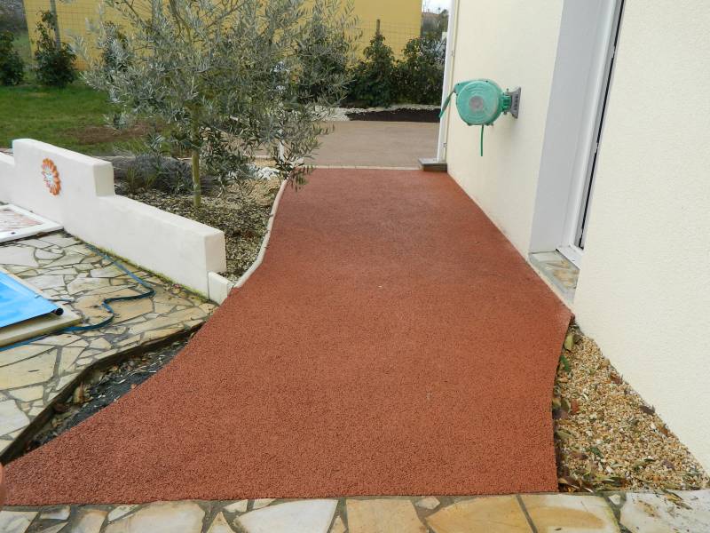 Réalisation du béton drainant REVASOL sur une allée d'accès à la maison. Décoratif, il met en valeur votre patrimoine et limite considérablement l'entretien de vos sols, contrairement aux pavés, le béton drainant ne demande pas d'entretien (mauvaises herbes....)
