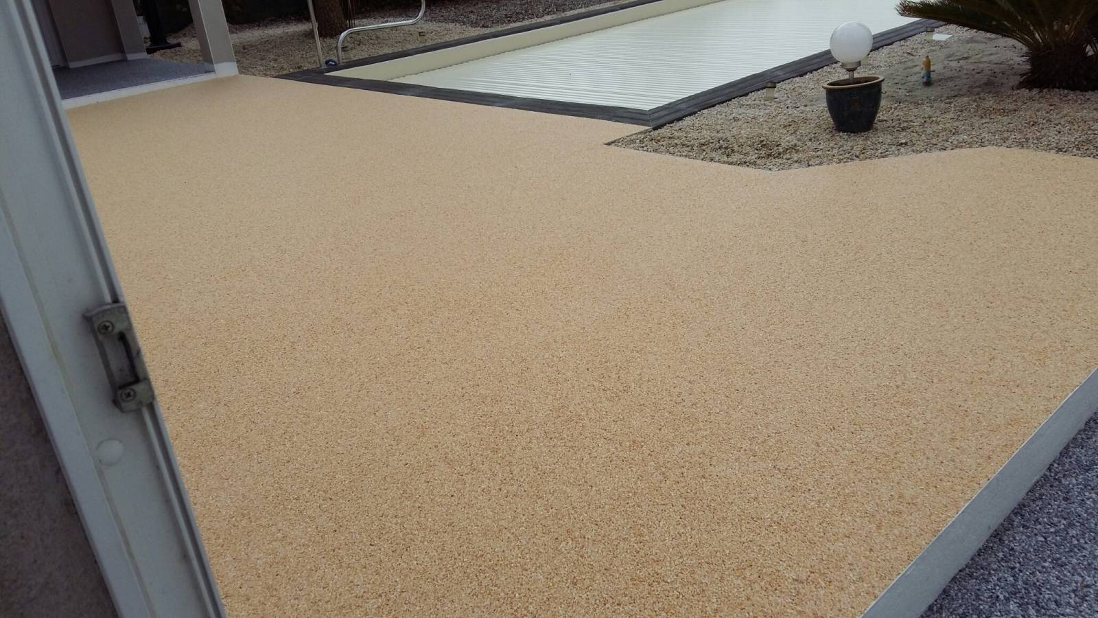 perméable, ce qui supprime les flaques d'eau tout en permettant un retour de l'eau dans les nappes phréatiques par infiltration. Sa résine bi-composante aliphatique assure un investissement durable dans le temps.