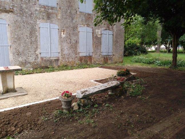 Réalisation d'une terrasse en alvéoles minérales de couleurs ROSE VALENCE sur la Vendée.