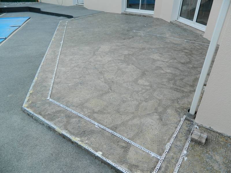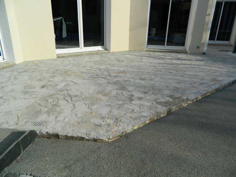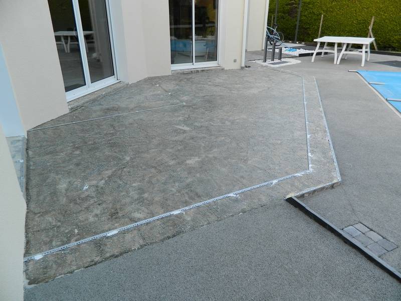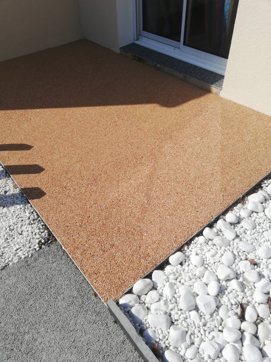 Nous avons rénové sur en Vendée (85) une terrasse avec préparation de la dalle béton existante, que nous avons ensuite revêtu de notre résine perméable "REVASTONE" avec une combinaison de couleur ZARCIS et la réalisation d'un motif et d'un bandeau en périphérie, de couleur GRIS OSCURO afin d'apporter de l'originalité et de l'esthétique.