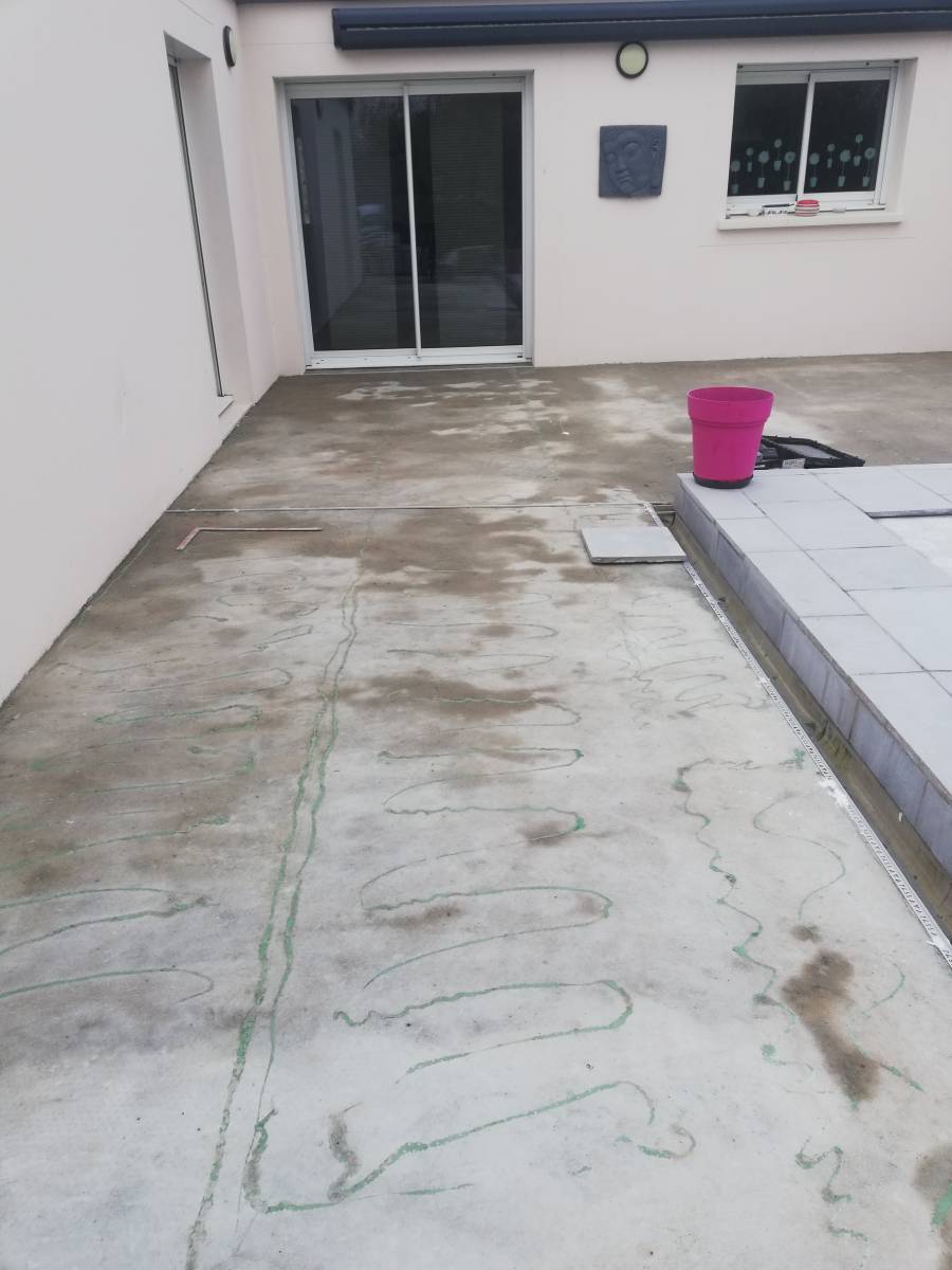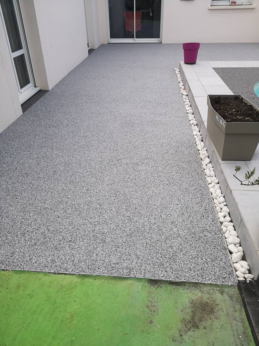 Nous avons réalisé à LA ROCHELLE (17) une plage de piscine en résine drainante "REVASTONE" de teinte GRIS OSCURO ainsi que le prolongement de celle-ci en terrasse de teinte GRIS BLEU GLACIER.
