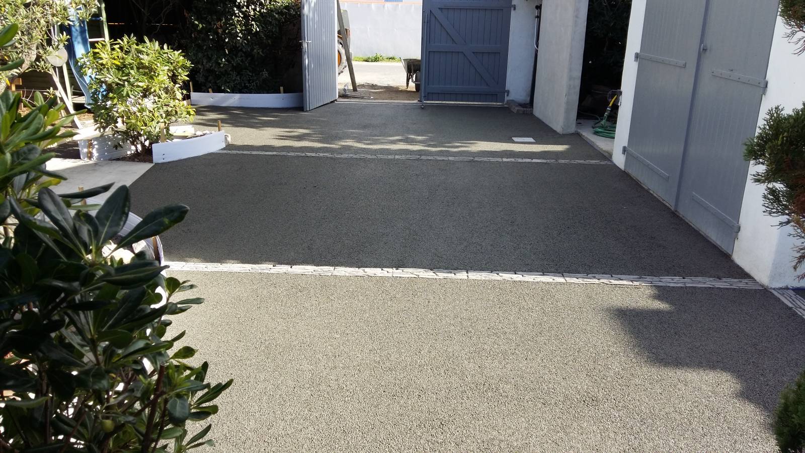 Les performances mécaniques du béton drainant coloré REVASOL permettent la circulation des véhicules légers.
