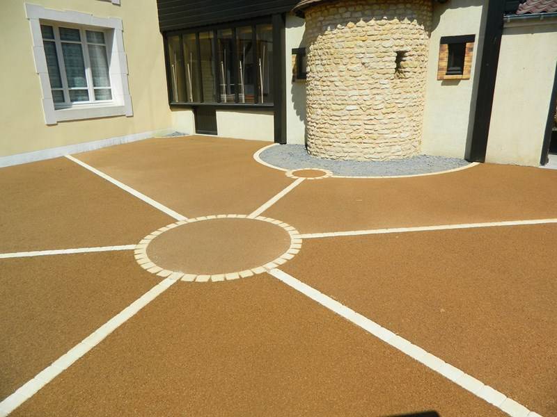Réalisation des allées piétonnes en béton drainant coloré extérieurs VENDEE