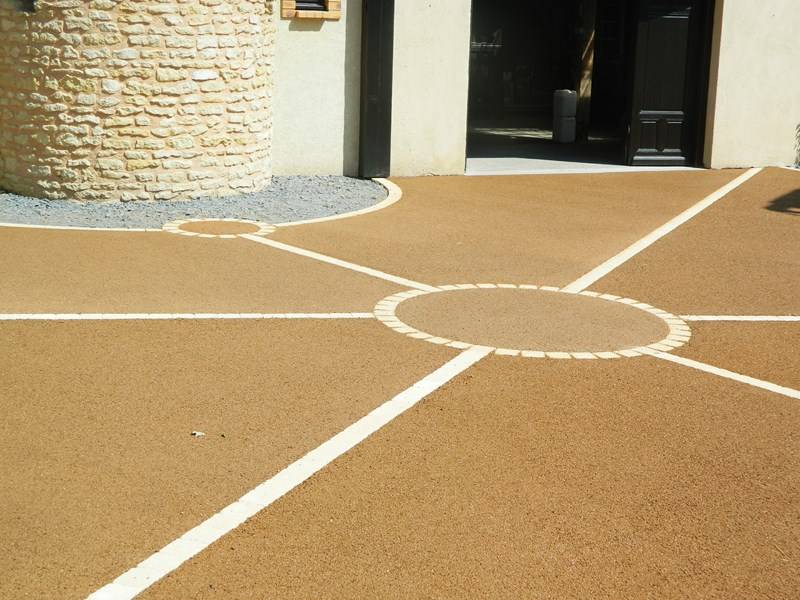 Revêtement parking extérieur en béton drainant couleur jaune safran en Loire Atlantique